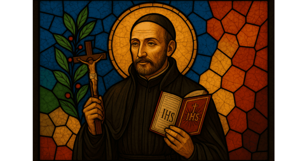 San Ignacio no invita a una devoción sentimental. Su espiritualidad es ardiente, pero no blanda. Exige elección, decisión, lucha. Y el punto de partida es siempre la Cruz. La Sangre del Rey es la bandera que se alza en el campo de batalla. No hay neutralidad posible: o se está bajo esa bandera, o se sirve a otro reino, el de la tiniebla y la mentira.